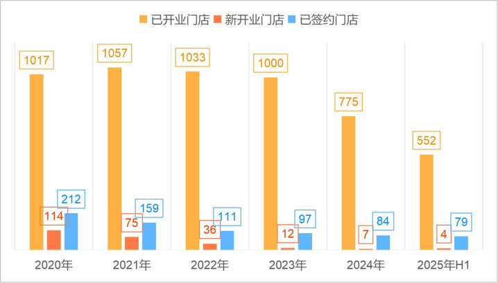 永辉超市作为一家零售行业,业绩增长的核心驱动来源于不断地开设新店。所以,将近五年时间永辉超市业绩亏损的核心原因是关店所致。按照2020年至2025年上半年永辉超市已开业店数量,新开业店数量和储备门店数量情况来看,永辉超市的已开业门店数量是逐年缩减。与此同时永辉超市的新开门店数量同样是逐年缩减的态势。运营门店数量的不断减少,导致了永辉超市营业收入连续下降,扣非净利润持续性亏损。